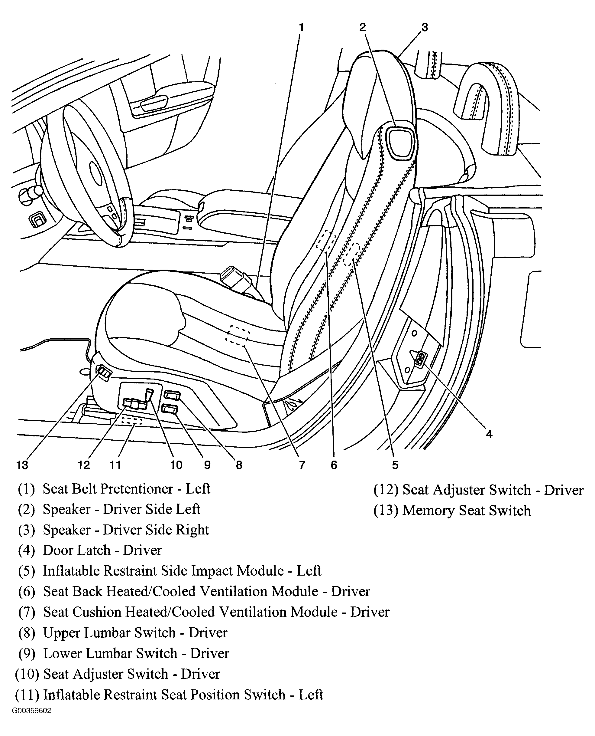 | Seat Back Heated/Cooled Ventilation Module - Driver | At top of driver seat back, between seat speakers. See Figure . |