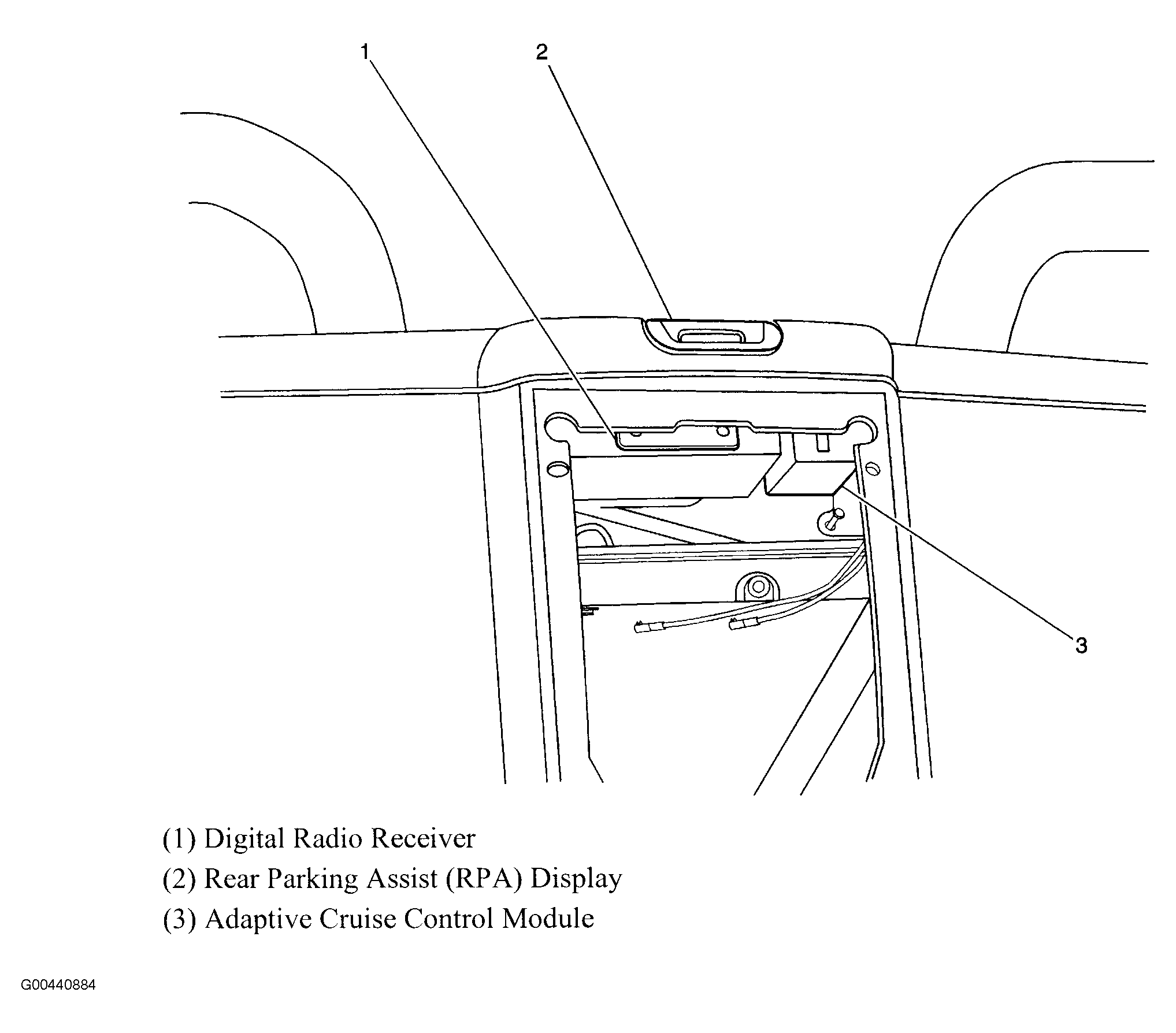 | Adaptive Cruise Control Module | Center of vehicle. See Figure. |