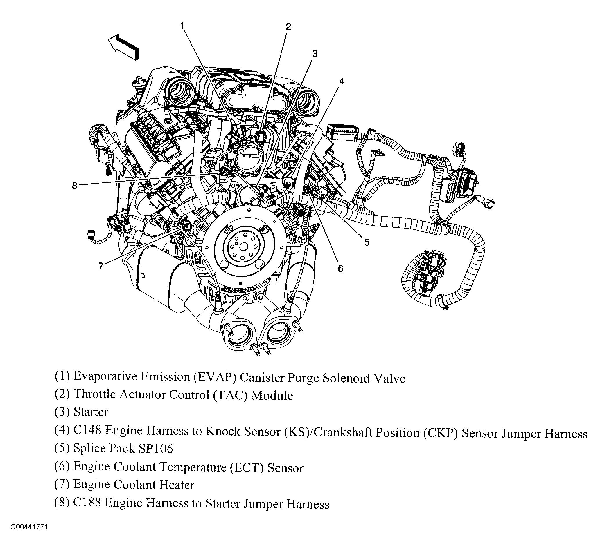 | Throttle Actuator Control (TAC) Module | Top rear of engine. See Figure. |