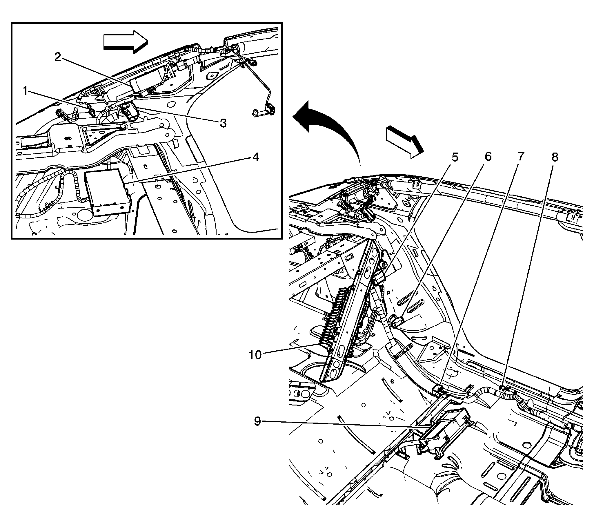 | Rear Fuse Block (9) | Under left rear seat. See Figure. |