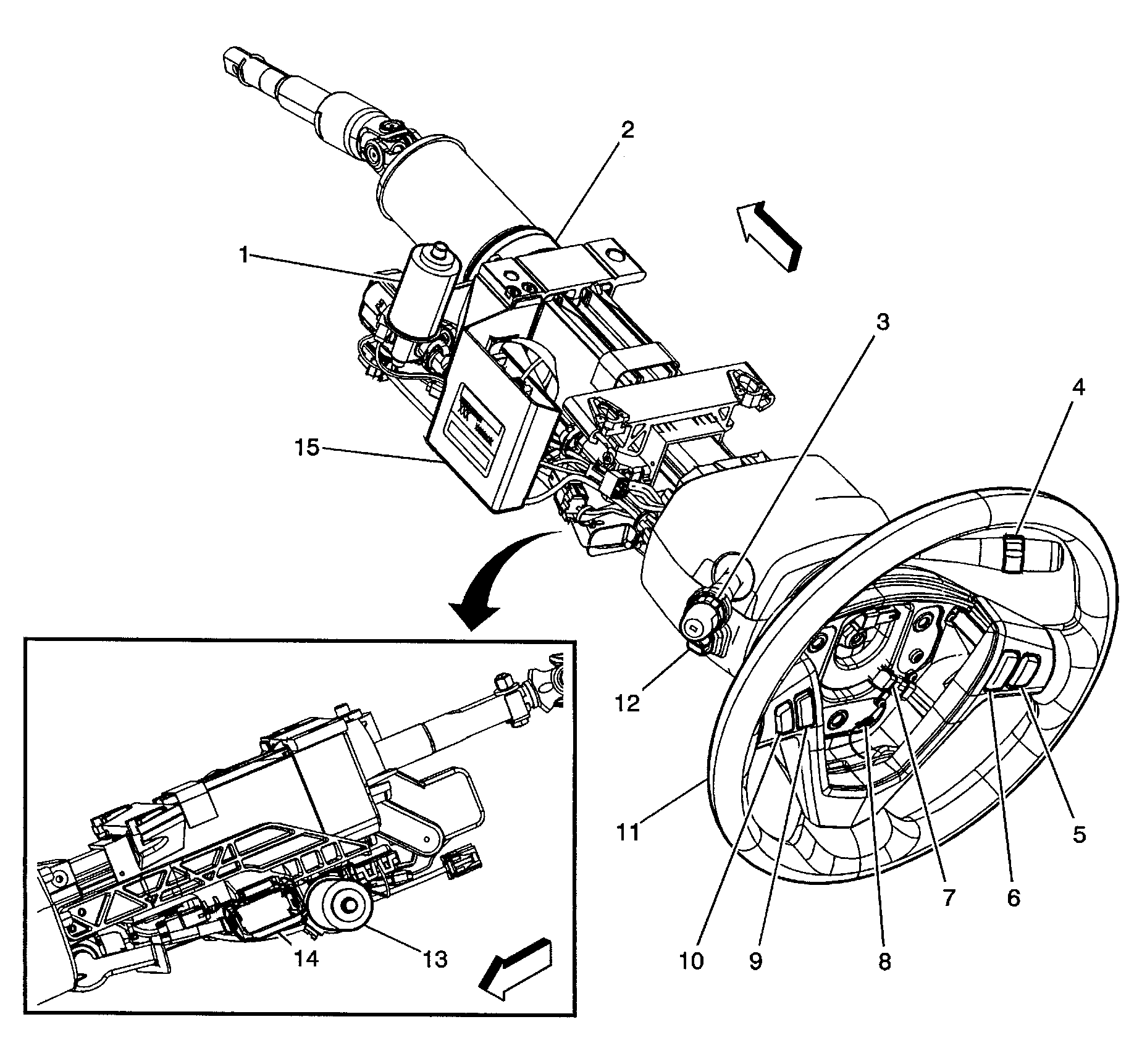 | Inflatable Restraint Steering Wheel Module Coil | Top of steering column, behind steering wheel. See Figure. |