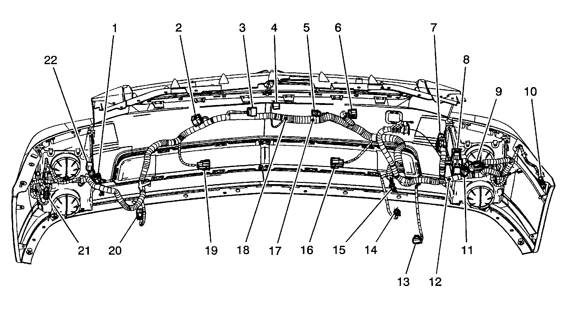 | Cruise Control Module Connector (4) | Behind center of front bumper. See Figure. |