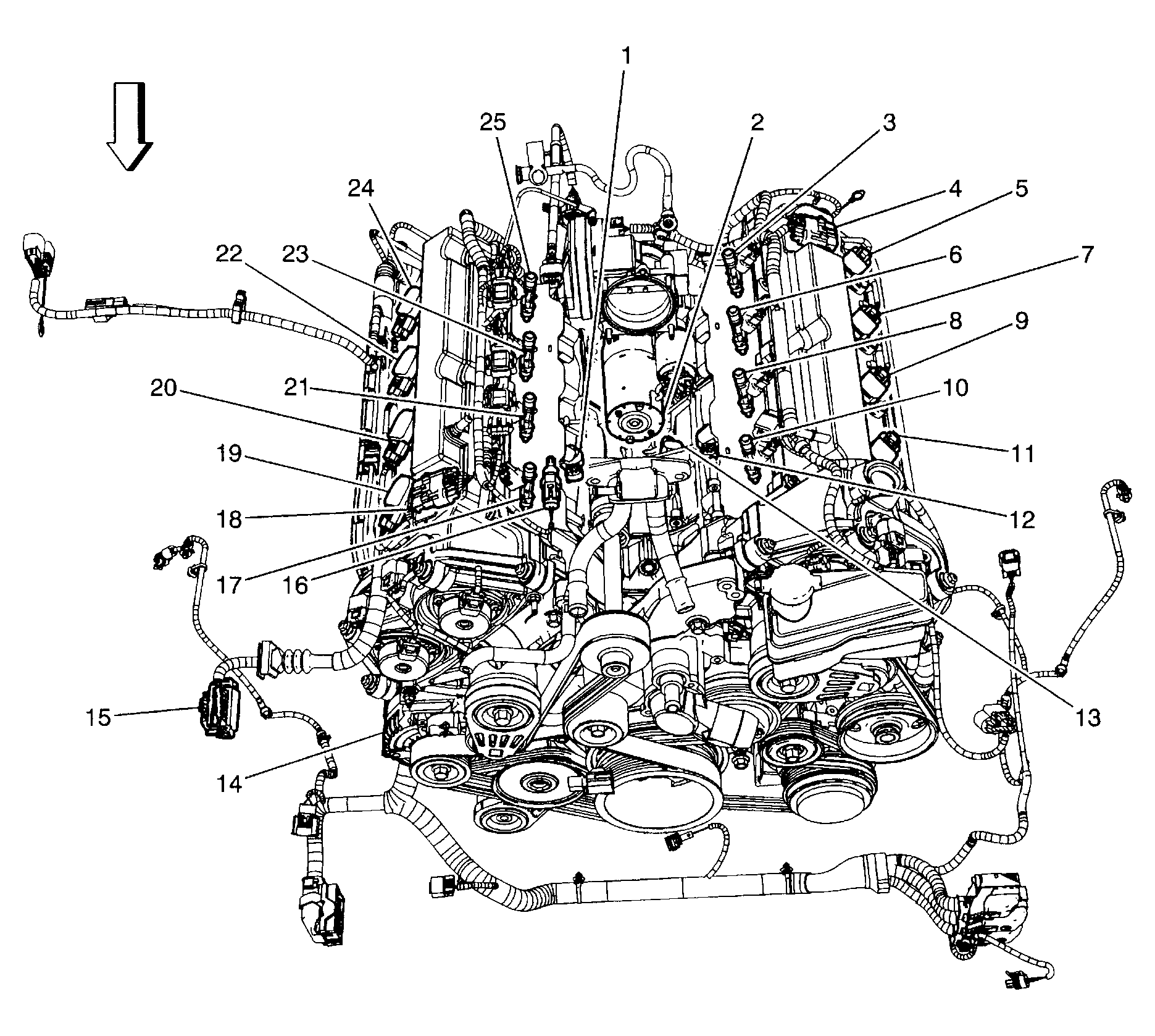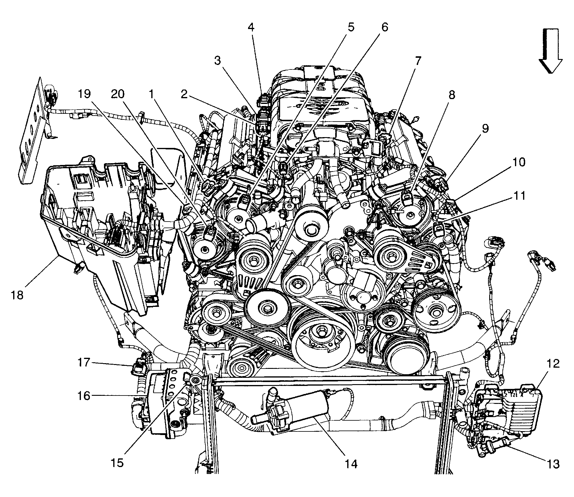| Engine Control Module (ECM) (3.6L) | Front of engine, on right valve cover. See Figure. |