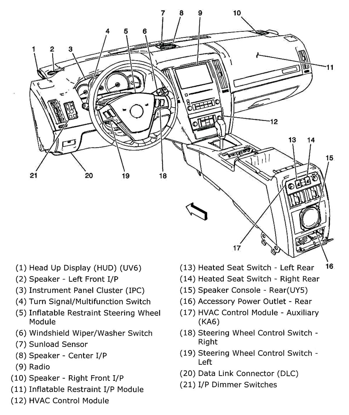 | Inflatable Restraint Sensing & Diagnostic Module (SDM) | Under rear of center console. See Figure. |