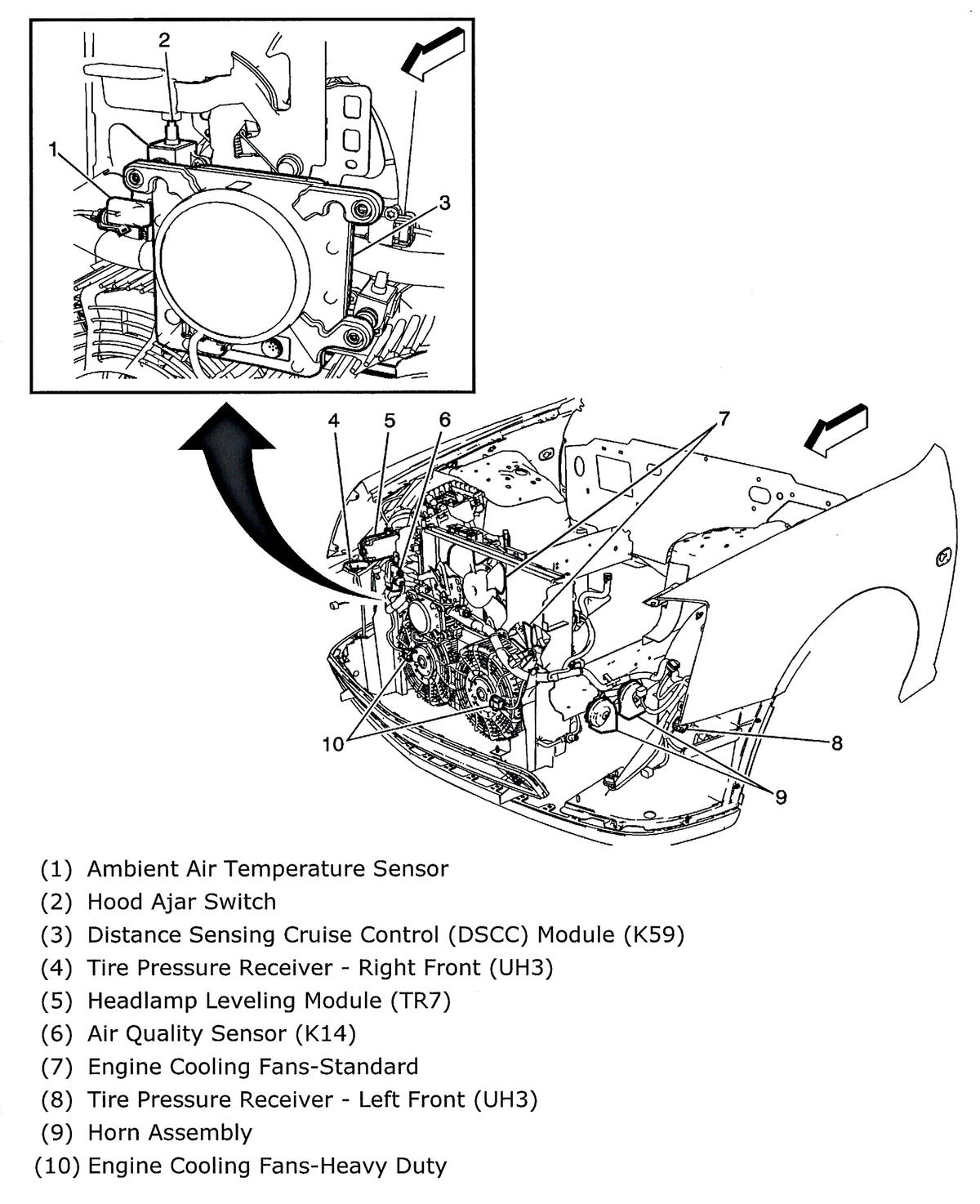 | Distance Sensing Cruise Control Module | Behind front fascia, near hood latch. See Figure. |