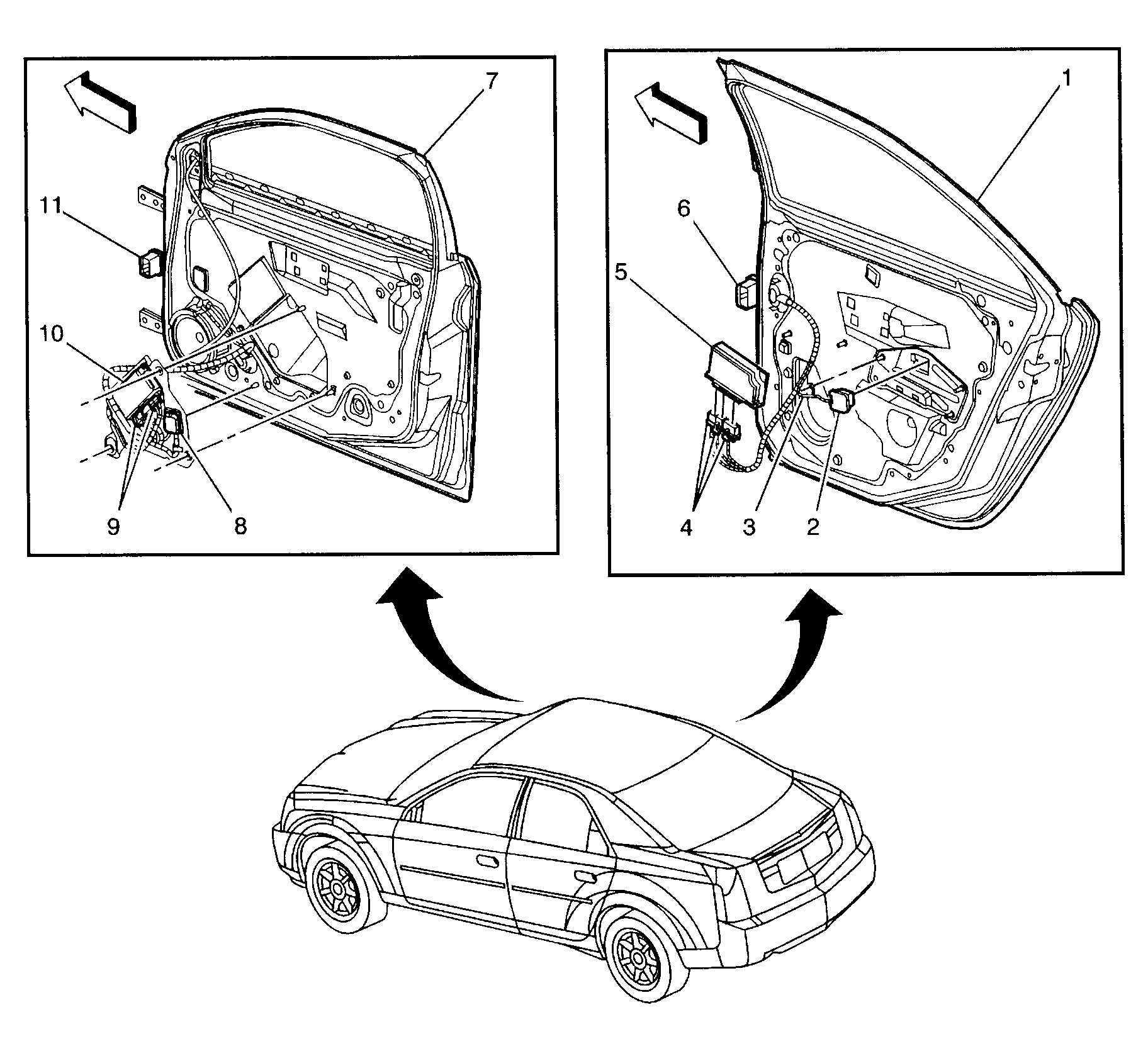 | Right Rear Door Module (RRDM) (LRDM Similar) (5) | Respective rear door. See Figure. |