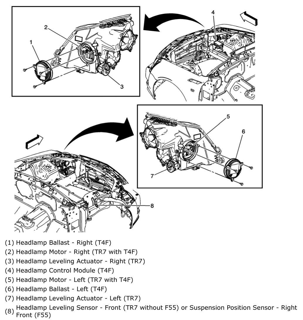 | Headlamp Control Module | Front of engine compartment. See Figure. |