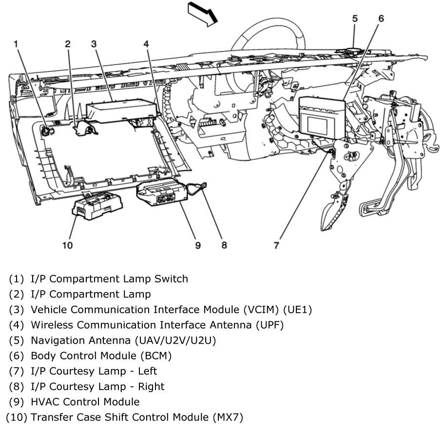 | Transfer Case Shift Control Module | Right side of dash. See Figure. |