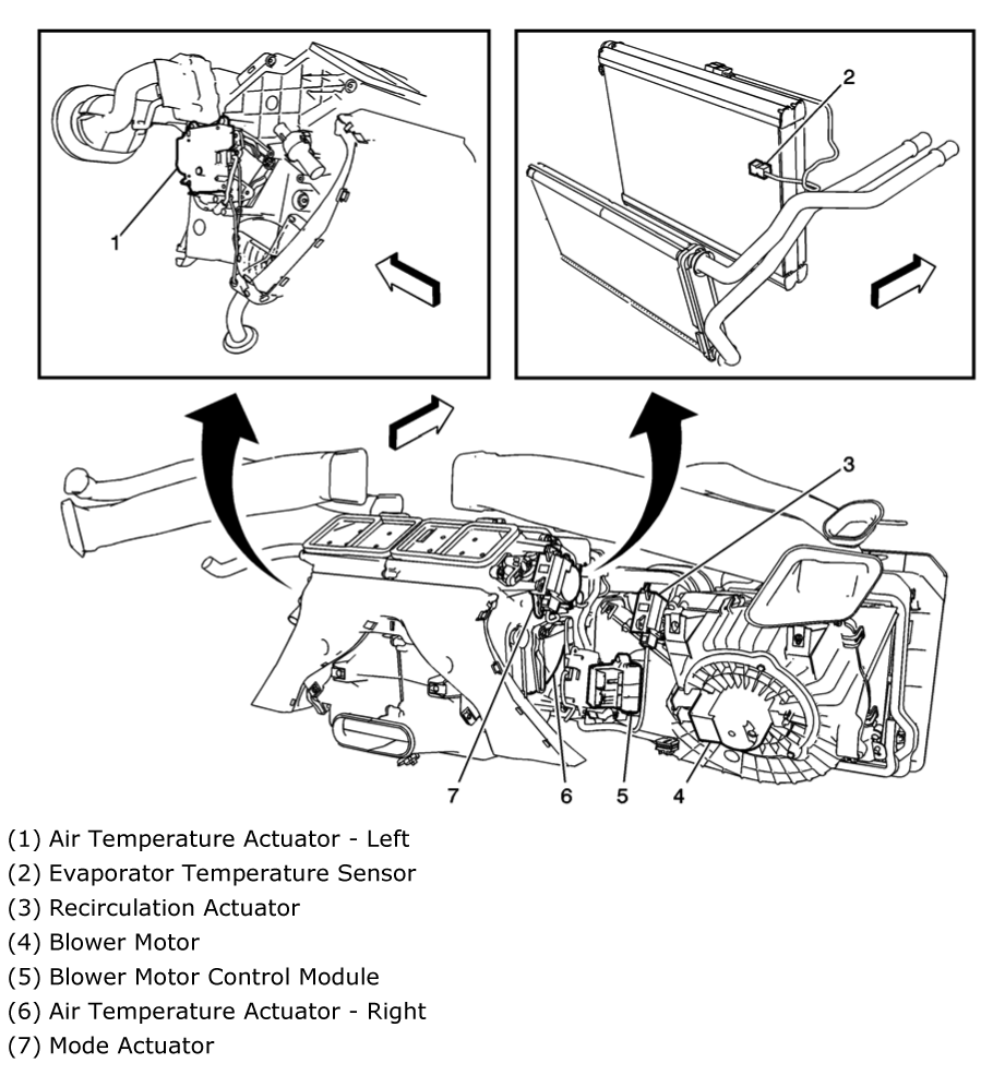 | Recirculation Actuator | Right side of HVAC module. See Figure. |