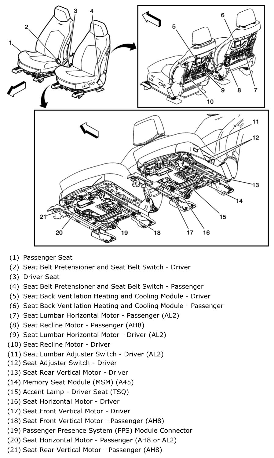 | Heated Seat Module (Passenger) | Under front passenger's seat. See Figure. |