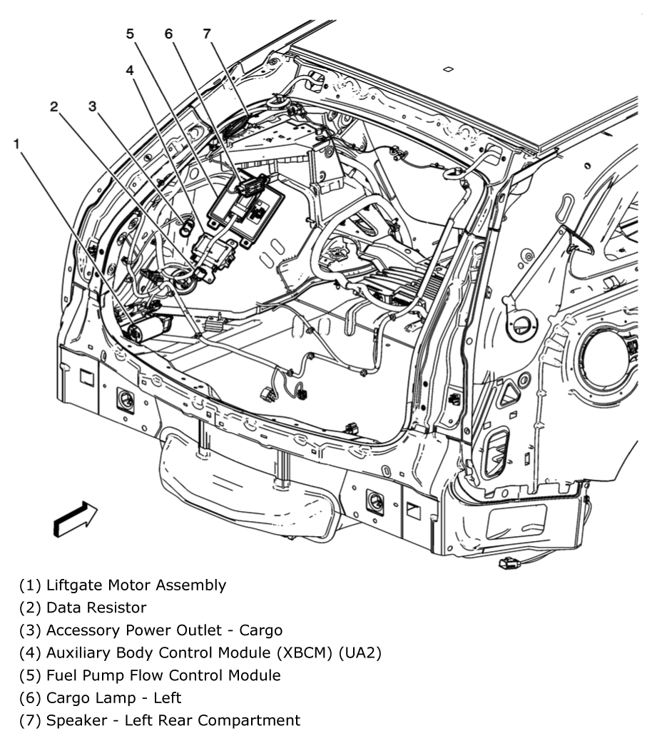 | Auxiliary Body Control Module (Wagon) | Left side of luggage compartment. See Figure. |