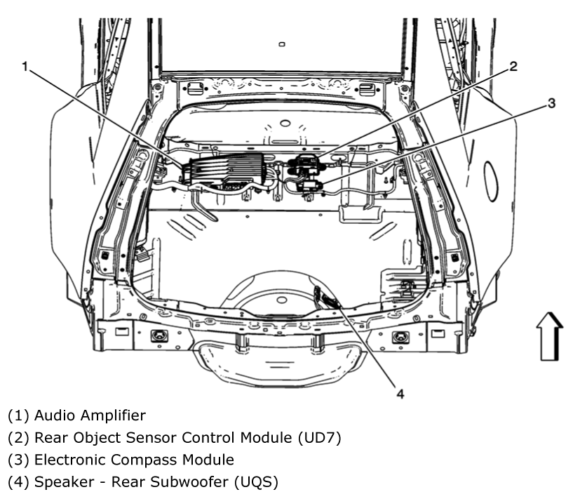 | Electronic Compass Module (Wagon) | Center front of luggage compartment. See Figure. |