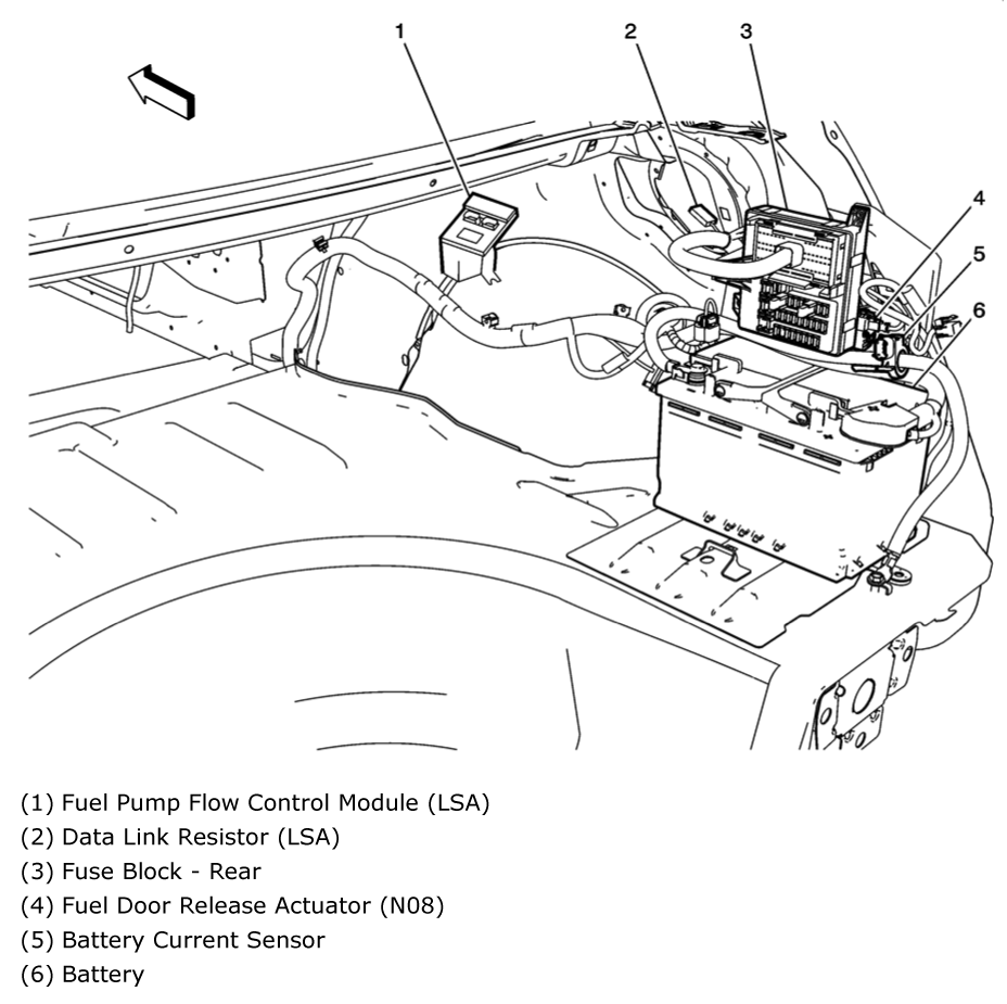 | Fuel Pump Flow Control Module (Sedan) (V6) | Left side of luggage compartment. See Figure. |