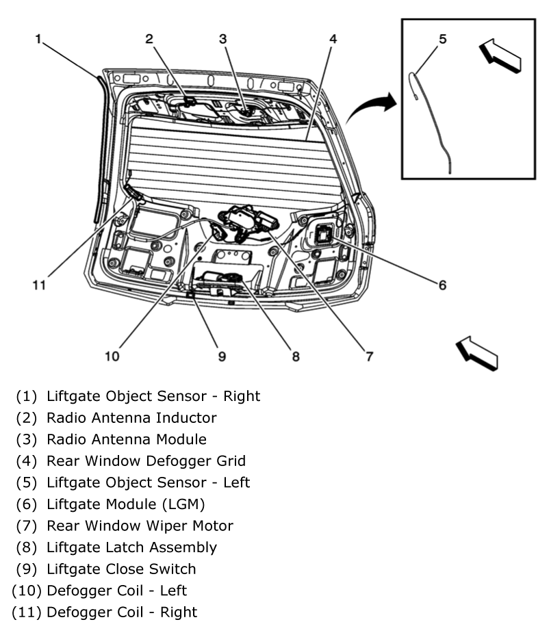 | Liftgate Module (LGM) | Right side of liftgate. See Figure. |