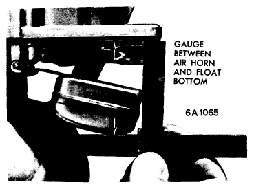 Invert air horn and float cover assembly, allowing float to hang free Distance from top of float to gasket surface on cover (gasket removed) should be as indicated in specifications To adjust, bend lip that contacts intake needle valve (see Figure).