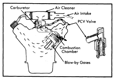 The air then flows into the rocker arm cover and valve compartment. It combines with blow-by gas and unburned air/fuel mixture and burns in combustion chamber. See Fig 1.