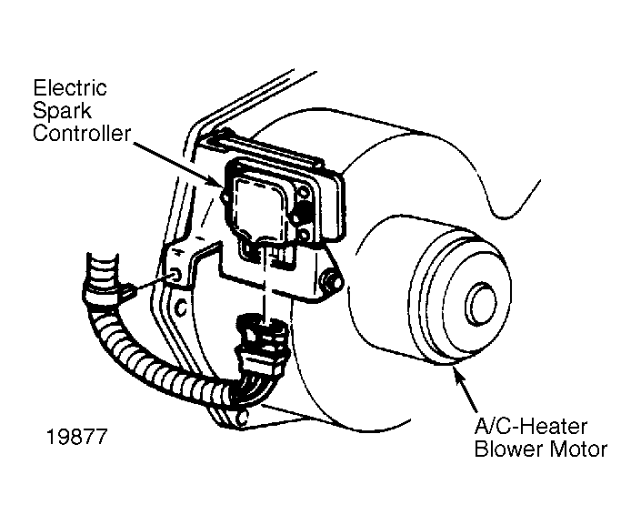 Electronic Spark Controller On right side of A/C-heater blower housing. See Figure.