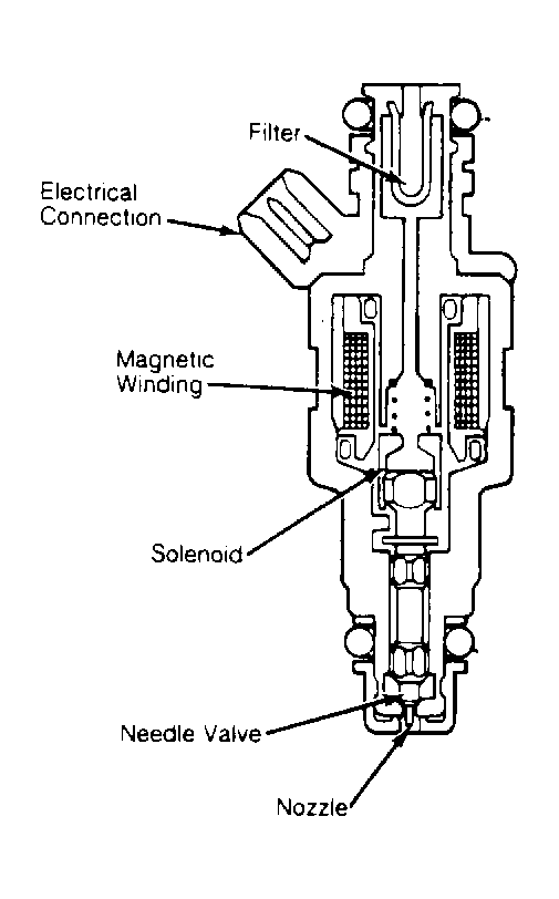 The "O" rings are lubricated and replaced as necessary whenever the injector is removed from the intake manifold. The "O" rings provide thermal insulation, thus preventing the formation of vapor bubbles and promoting good hot start characteristics. The "O" rings also prevent excessive injector vibration.