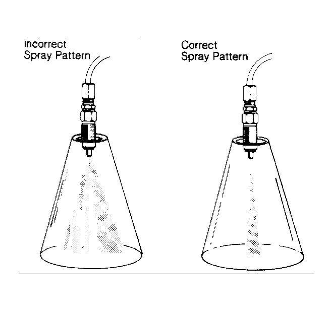 - Note spray pattern and compare with examples shown. See Fig 1 . If incorrect, replace injector.