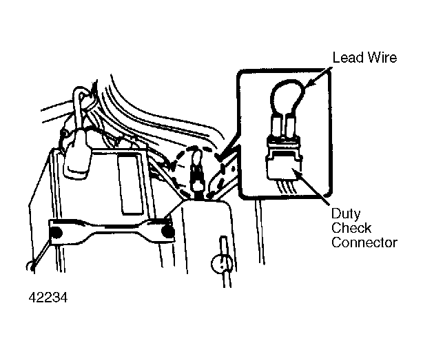 - Remove duty check connector cap and short the terminals with a lead wire. See Fig 1 . Turn ignition switch "ON" and "OFF" repeatedly without starting engine.