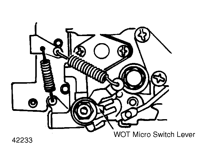 - Clearance should be .28-.33" (7.2-8.4 mm). If clearance is incorrect, bend WOT micro switch lever to adjust clearance. See Fig 2 .