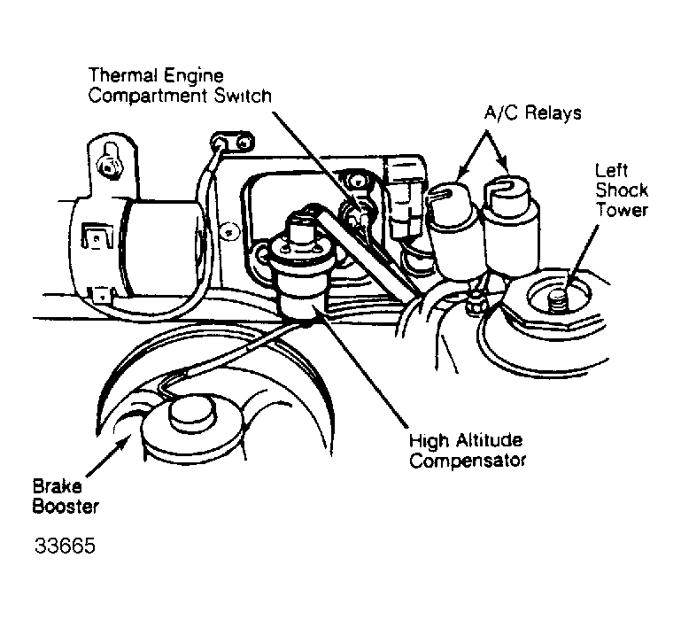 | High Altitude Compensator | Above brake booster, near coil. See Figure. |