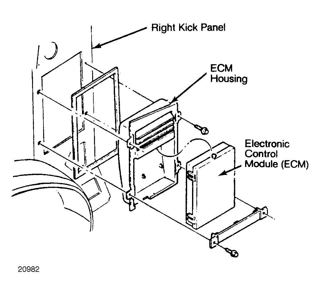 | Electronic Control Module (ECM) | Behind right kick panel. See Figure. |