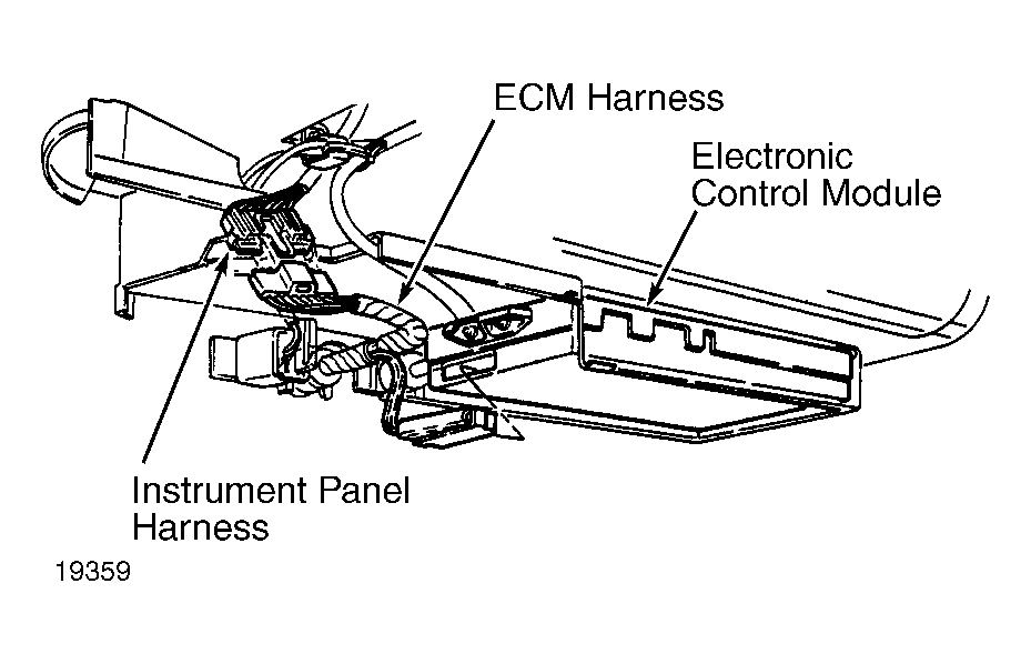 | Electronic Control Module (ECM) | Below right side of dash. See Figure. |