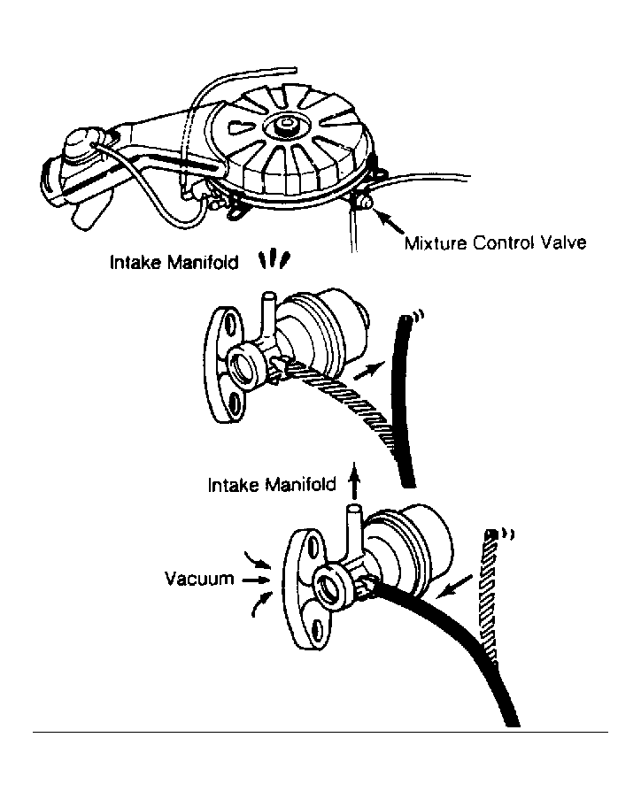 - Disconnect vacuum hose from MCV. Place a finger over air inlet of MCV. Vacuum should not be felt. Reconnect vacuum hose. Vacuum should be present. See Fig 1 .