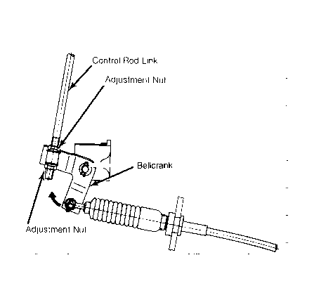 - Loosen adjustment nuts at control rod link. With transaxle in Neutral detent, place gearshift lever in the "N" position. Rotate bellcrank assembly clockwise to remove slack in cable.