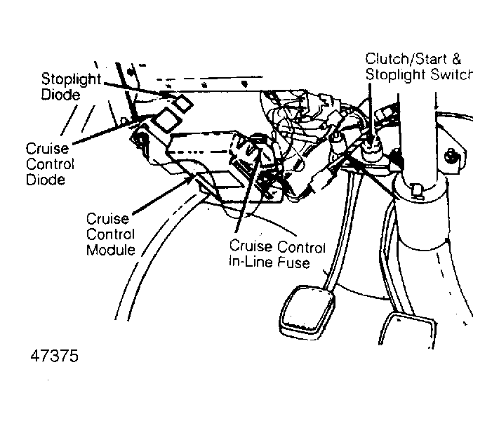 | Cruise Control | On left side of dash, taped to cruise control module. See Figure . | |