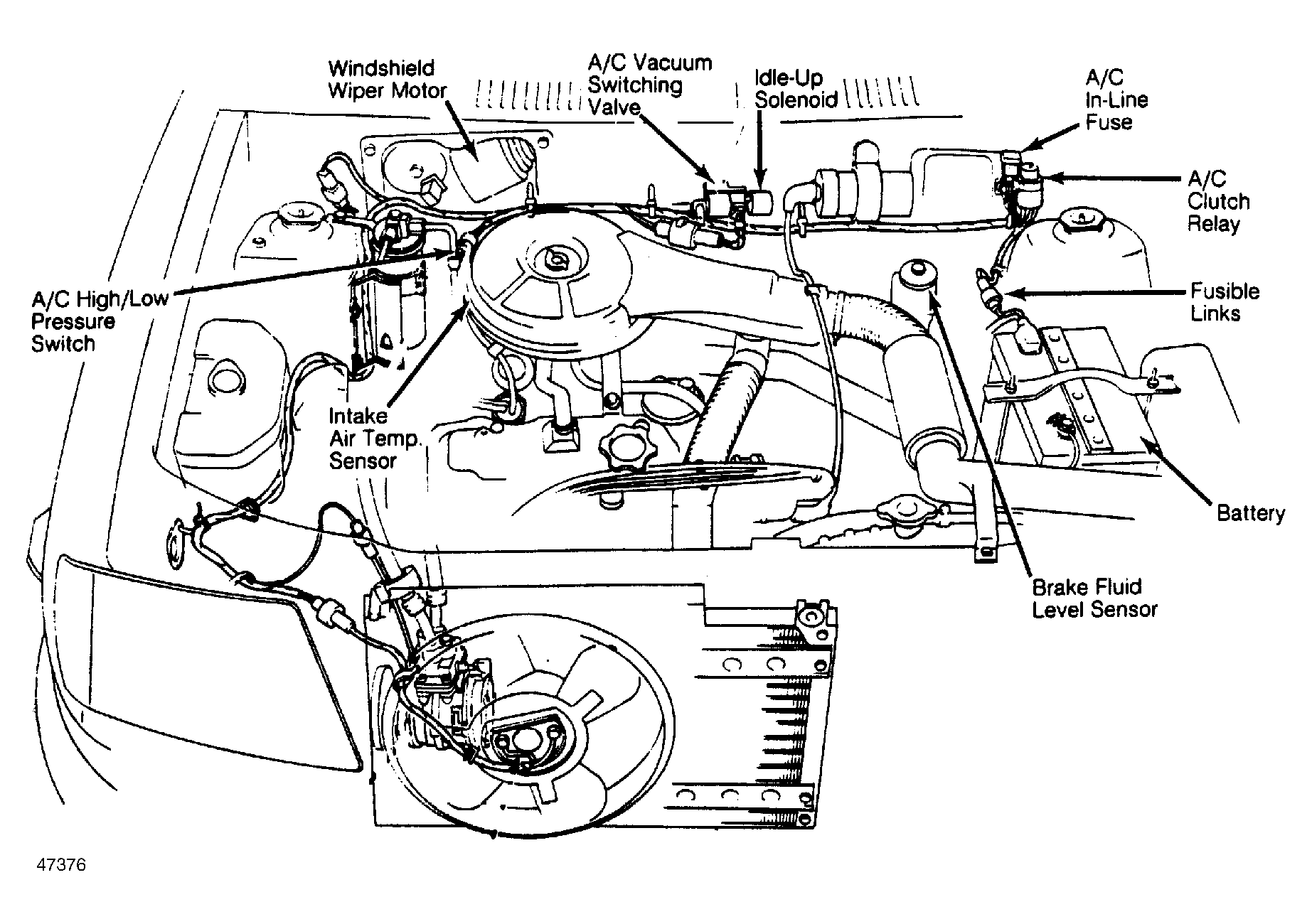 | A/C | On left rear corner of engine compartment. See Figure . | |