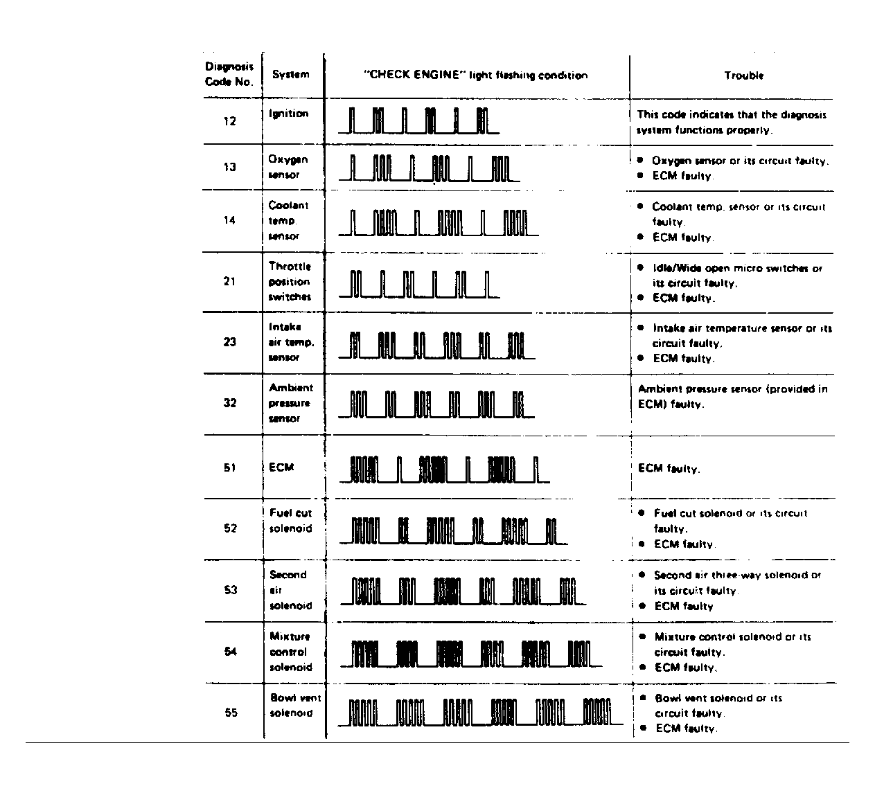- Code 12 will flash 3 times and a trouble code will flash 3 times and continue to cycle in this sequence. See Fig 2