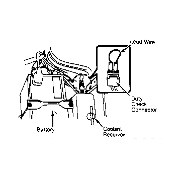 - Remove duty check connector cap and short the terminals with a lead wire. See Fig 1 . Turn ignition on and off repeatedly without starting engine.