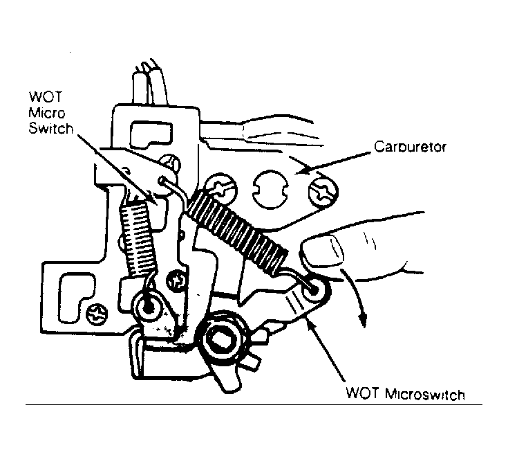 - With engine at 1500-2000 RPM, turn WOT microswitch on by moving microswitch lever. See Fig 2