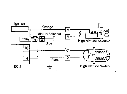 - Connect jumper wire to connector terminal C, ground jumper wire repeatedly. High altitude solenoid should click. If solenoid clicks, solenoid is okay. If solenoid does not click, replace solenoid.