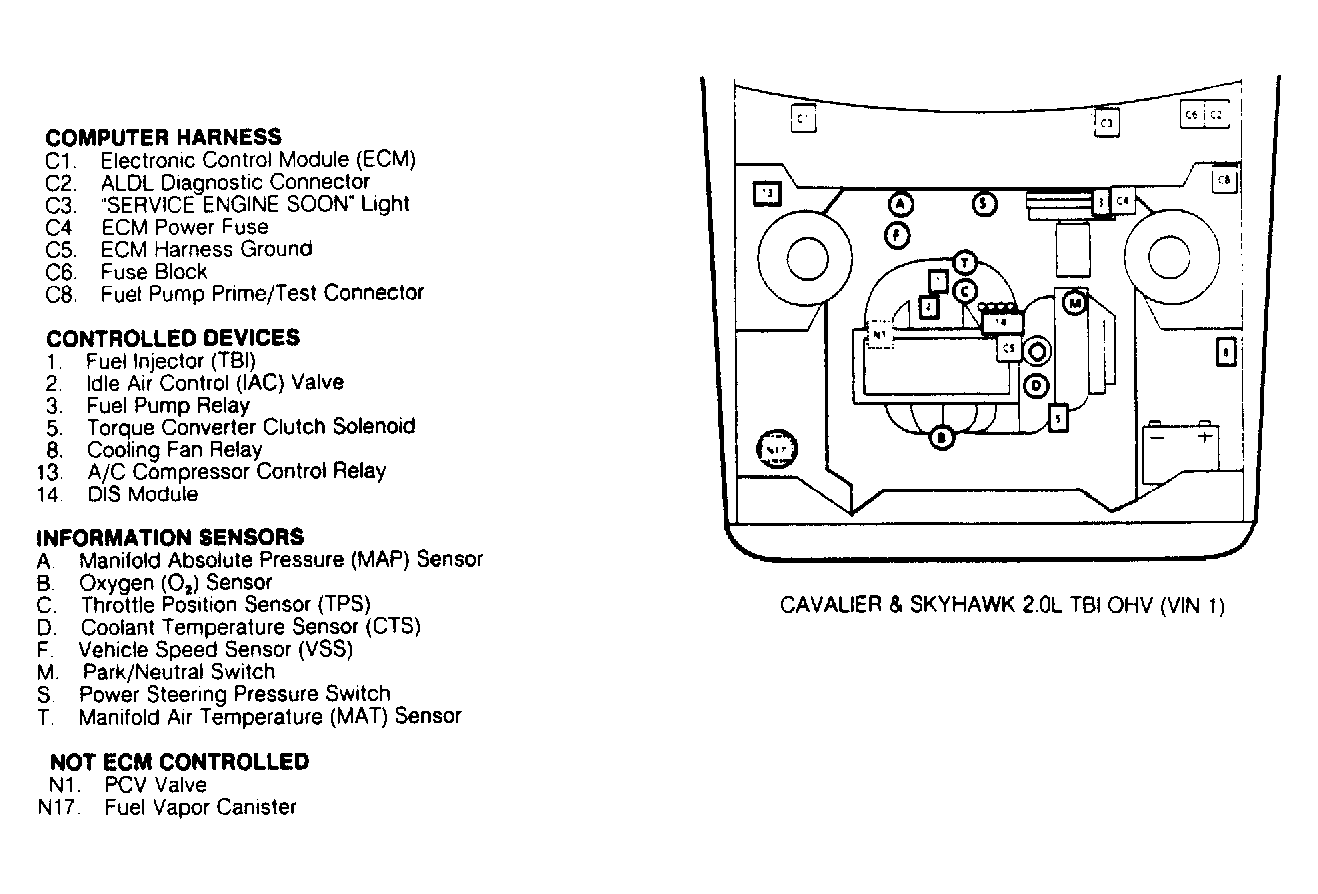 | 2.0L TBI-OHV | Behind right side of dash, near glove box. See Figure . | ||