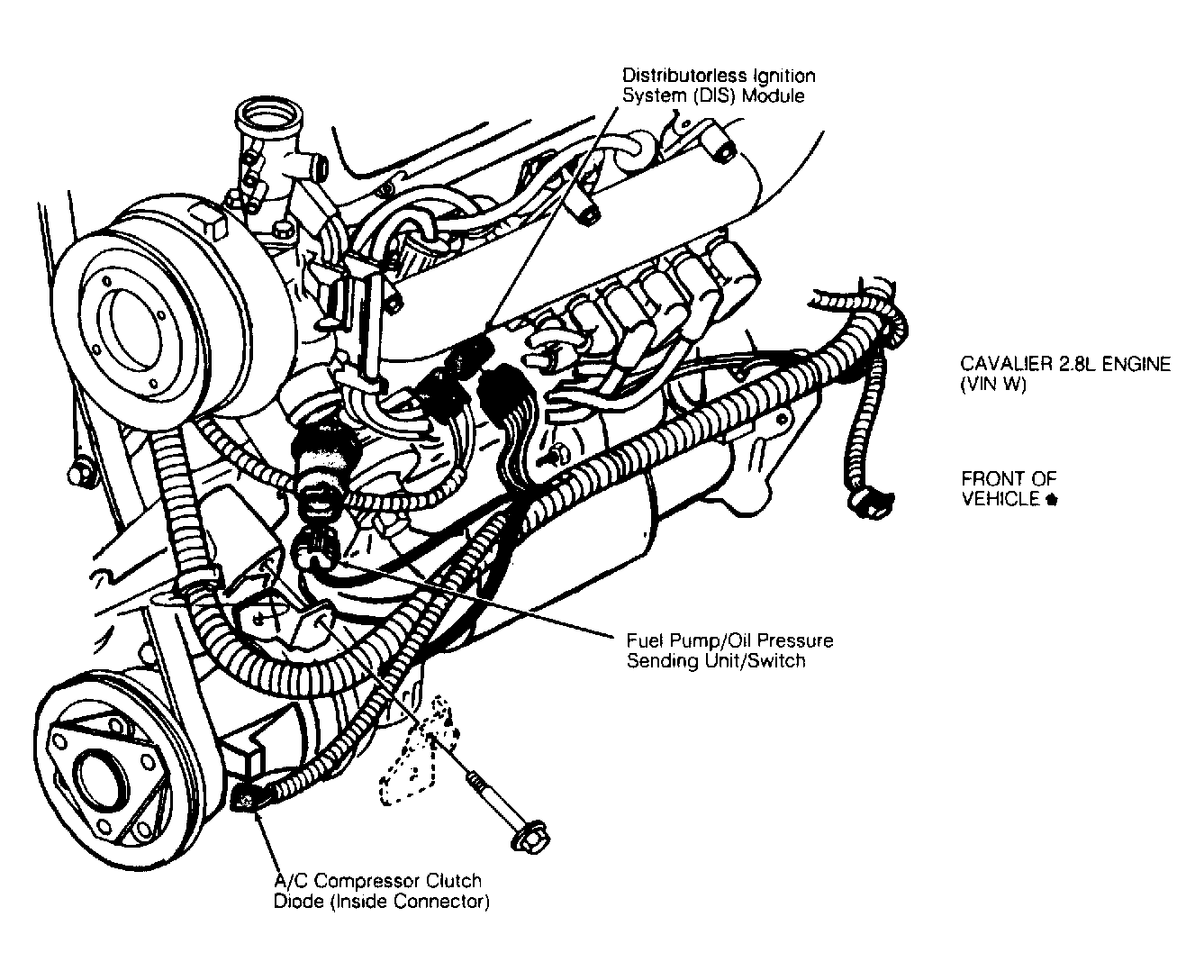 | 2.8L PFI | On left side of engine, below exhaust manifold. See Figure . | ||