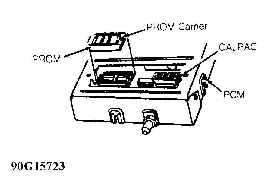 Some ECM models use a CALPAC as well as a PROM. See Fig 1. The CALPAC must also be removed from replaced ECM and installed in new one. Removal and replacement procedures for CALPAC are same as for PROM. See PROGRAMMABLE READ-ONLY MEMORY (PROM)  in this article. If units are installed improperly, grounding diagnostic test lead will set Code 52.