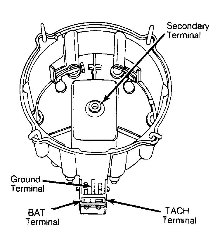 - Turn ignition off. Remove the distributor cap and coil assembly. Turn cap upside down. Set ohmmeter to low scale. Connect leads to coil BAT and TACH terminals. See Fig 1. If resistance exceeds zero, or nearly zero, replace ignition coil.
