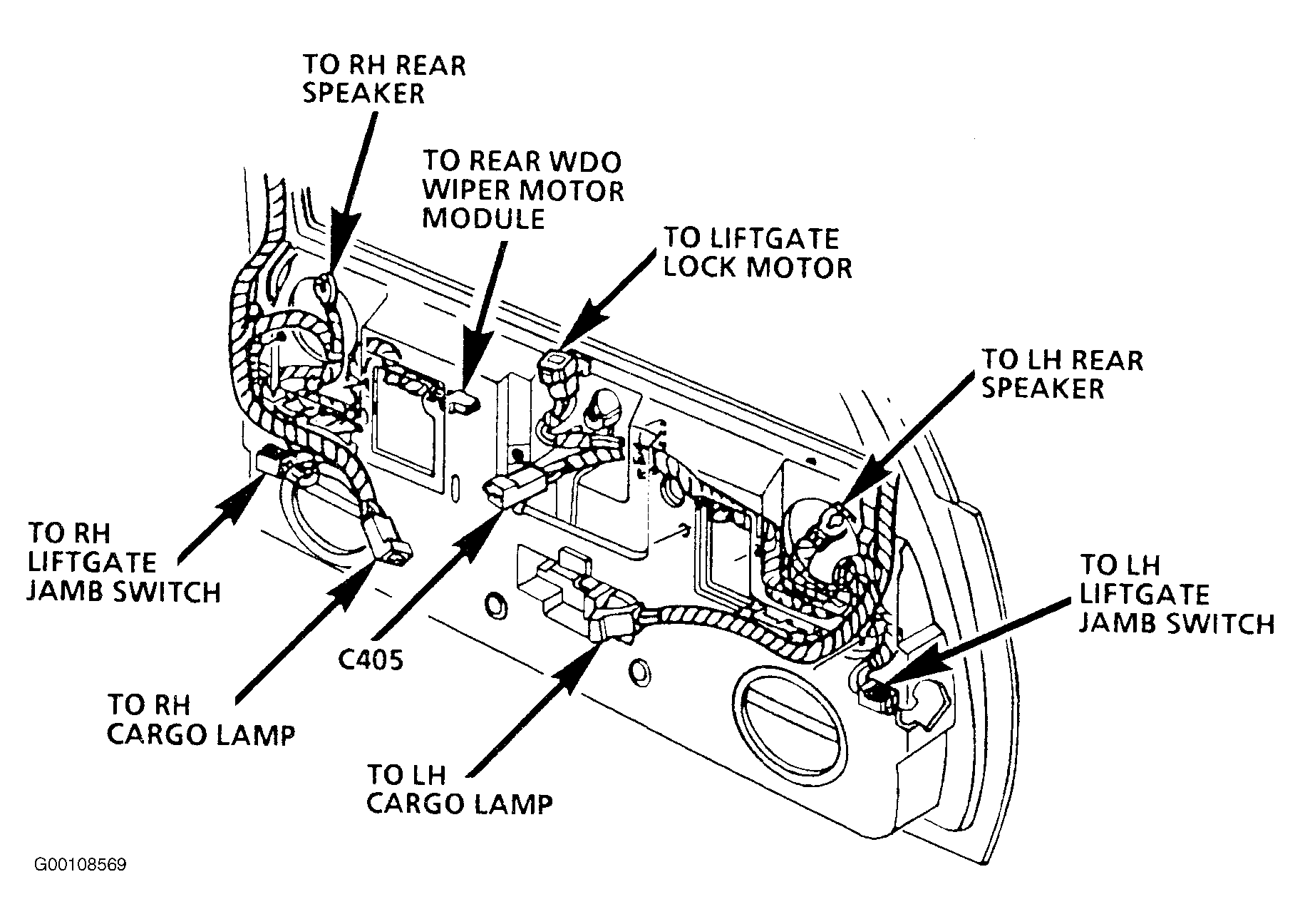 | C400 | Near Center Of Liftgate Opening, Above Headliner. See Fig 3 |