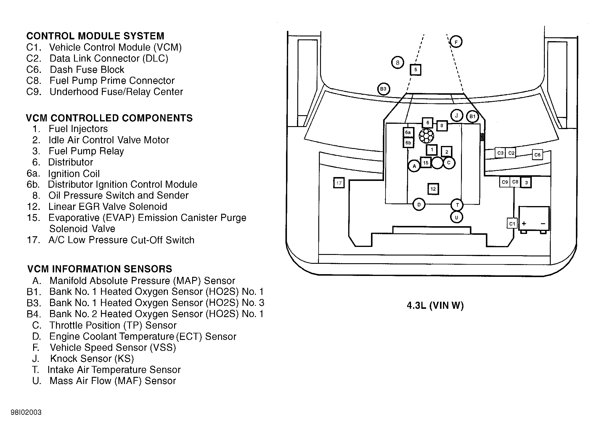 | Distributor Ignition Control Module | Top of engine, front of coil. See Figure. |