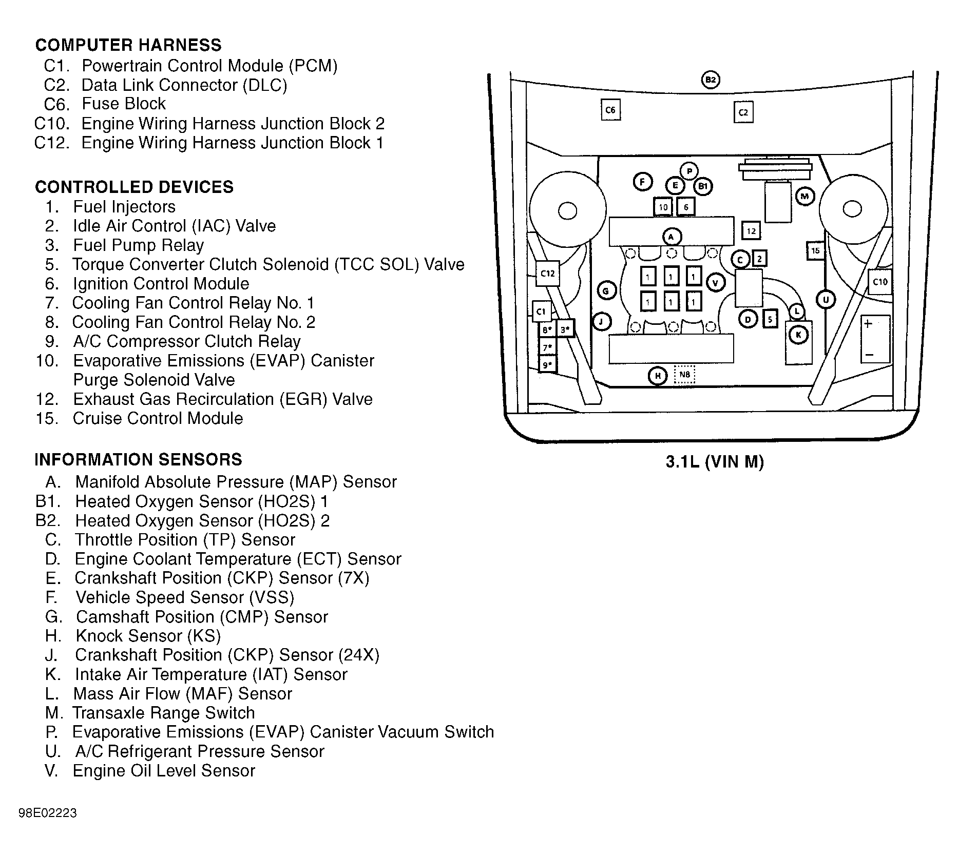 | Powertrain Control Module (PCM) (3.1L VIN M) | On right side of engine compartment, forward of strut tower. See Figure . |