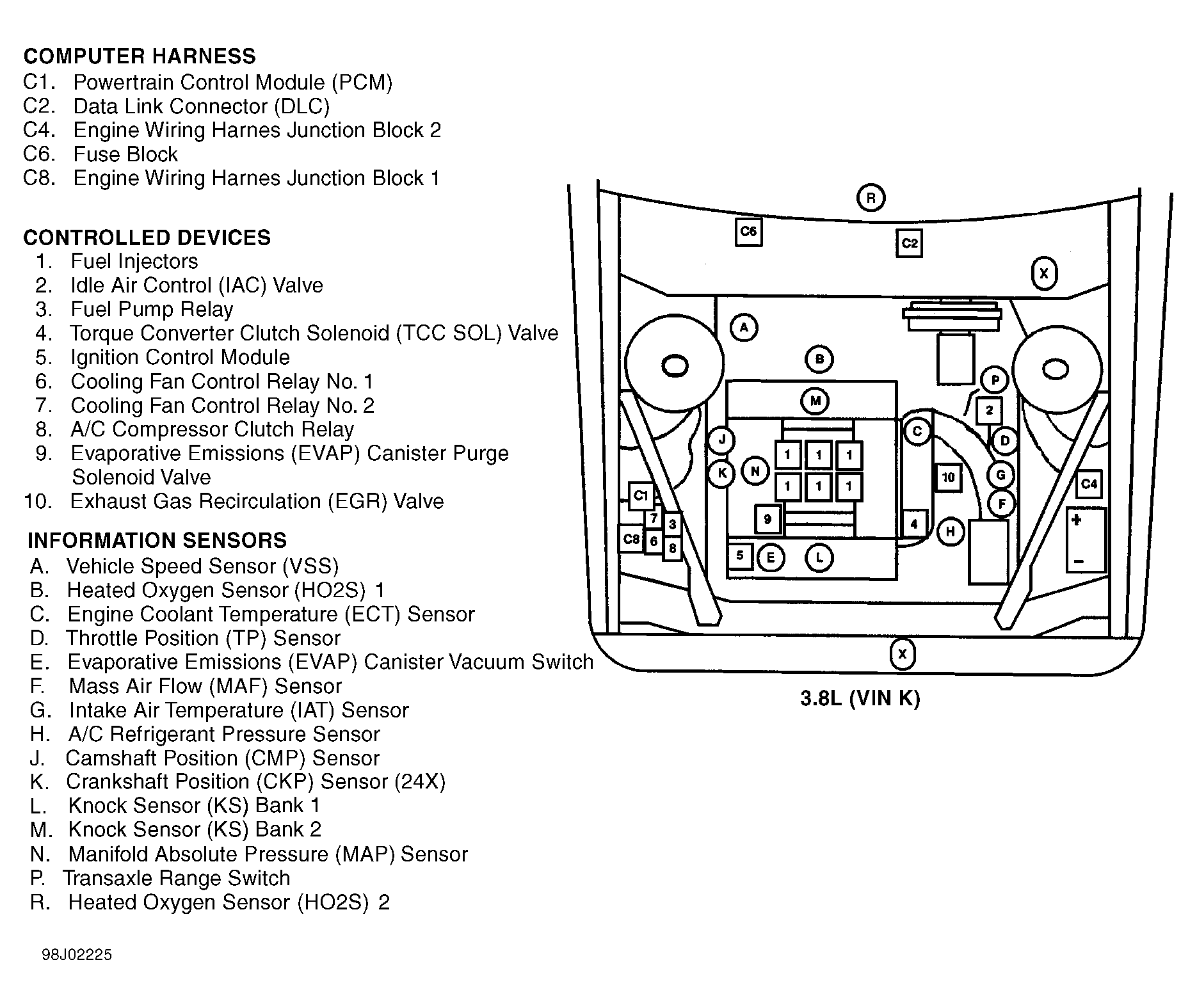 | Powertrain Control Module (PCM) (3.8L VIN K) | On right side of engine compartment, forward of strut tower. See Figure . |