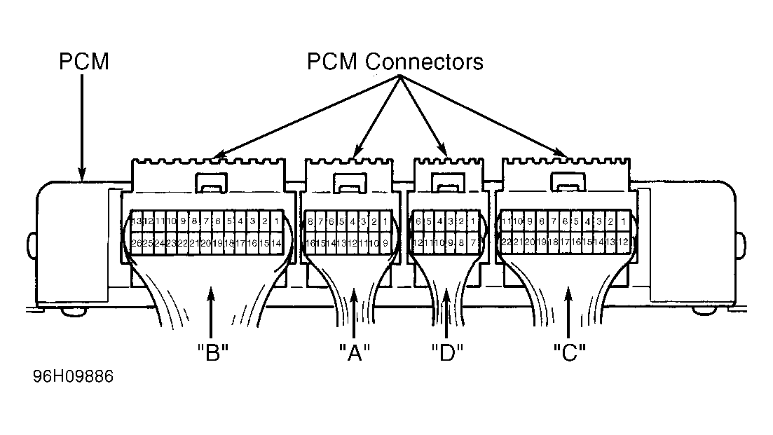Disconnect PCM harness connectors. Check for open or short circuits between PCM harness connector and component harness connector. See PCM CIRCUITS table. See WIRING DIAGRAMS . If harness is open or shorted, repair as necessary.