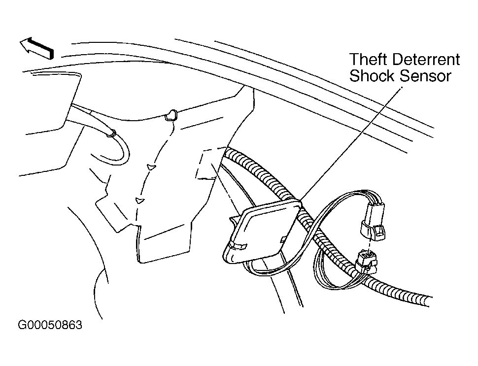 | Theft Deterrent Shock Sensor | Behind Right Rear Inner Trim Panel, Mounted To Wheelwell |