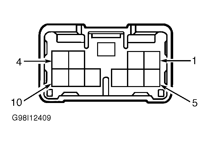 Remove power mirror switch. See POWER MIRROR SWITCH under REMOVAL & INSTALLATION. Disconnect power mirror switch connector. Using an ohmmeter, check continuity between appropriate mirror switch terminals. See POWER MIRROR SWITCH CONTINUITY TEST table. See Figure . Continuity should exist between indicated terminals. If continuity is not as specified, replace switch.