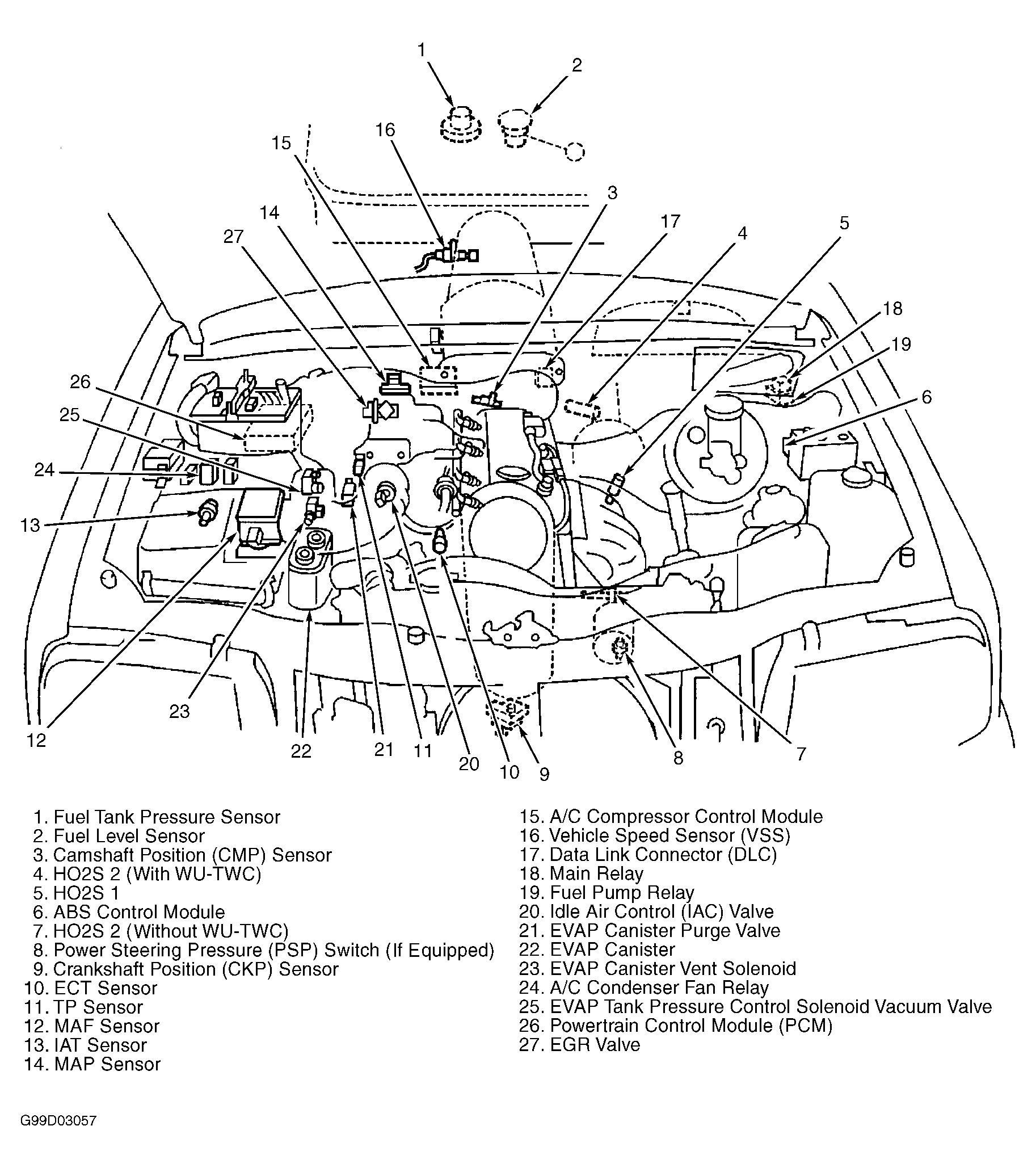 Fig 1: Component Locations (1.6L Shown; 2.0L Is Similar)
