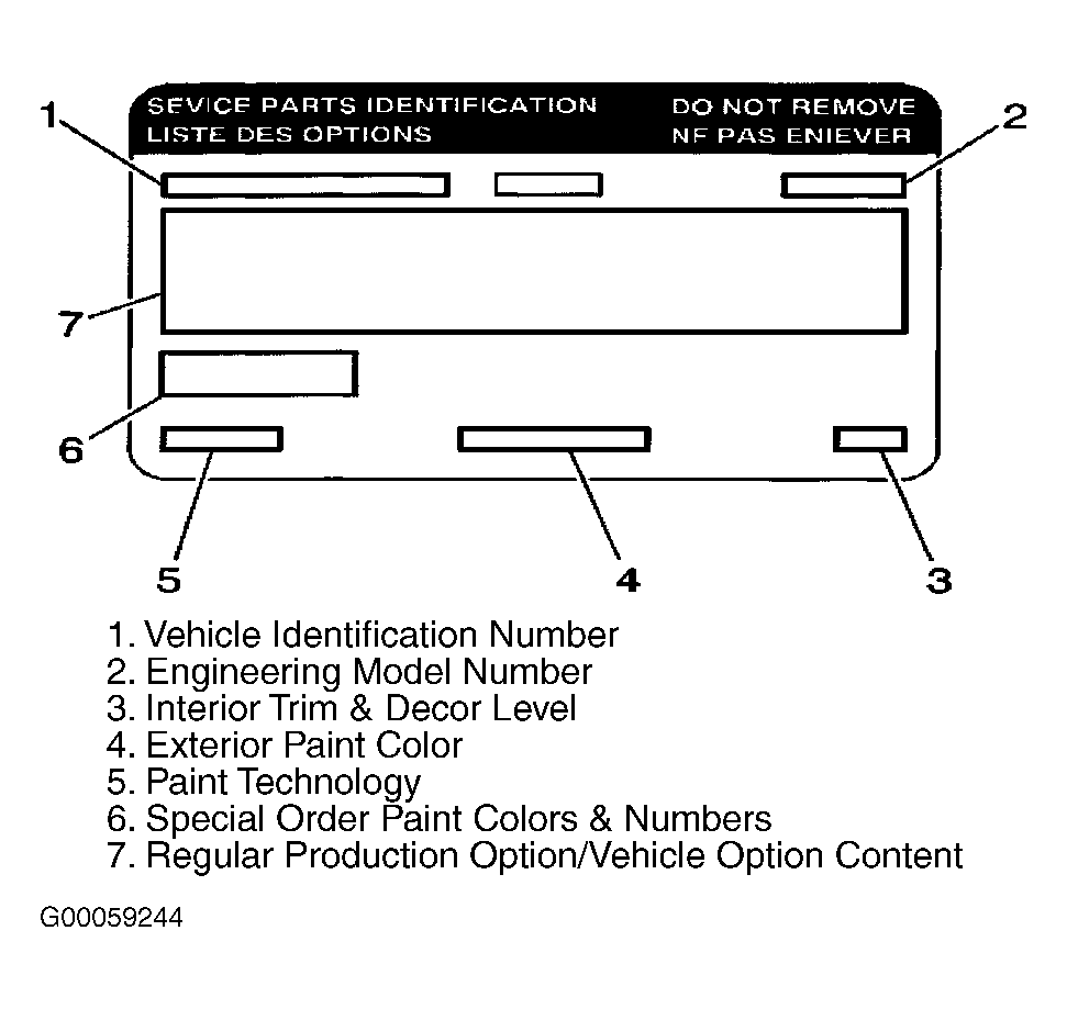 Vehicle can be equipped with one of 3 different Body Control Modules (BCM) based on vehicle equipment. Standard base models are equipped with BCM type 2 which controls all body control functions, except Remote Keyless Entry (RKE) system and Content Theft Deterrent (CTD) anti-theft system. Models with RKE system are equipped with BCM type 3, and are identified with Regular Production Option (RPO) code AU0. RPO codes, also known as vehicle option content codes, are printed on service parts identification label, located on inside of left quarter trim access panel. See Fig 1 and Figure . Models with RKE system and CTD anti-theft system are equipped with BCM type 4 and are identified with RPO codes AU0 plus UA6.