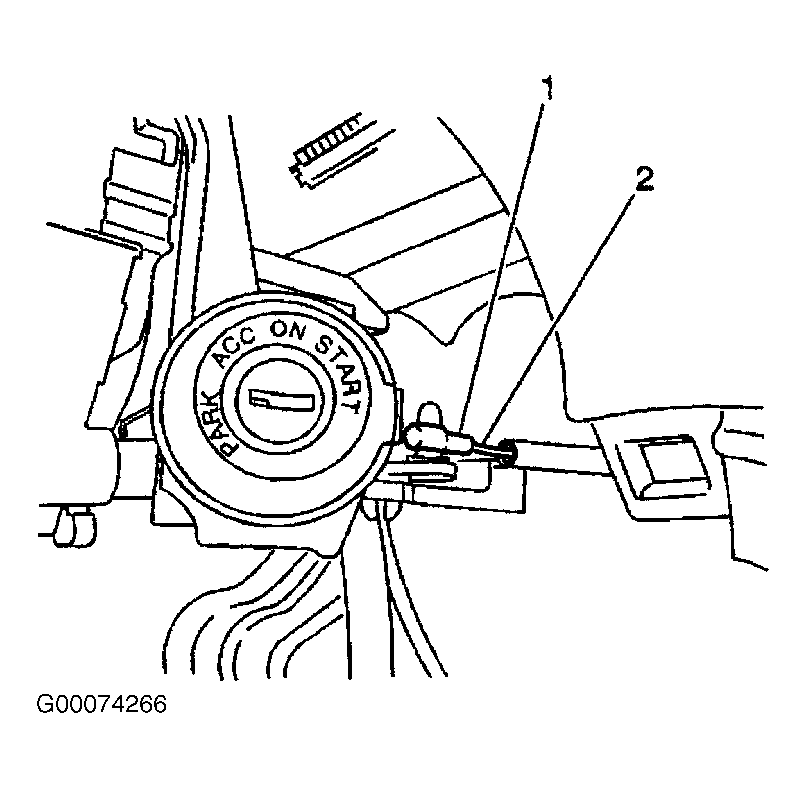 - Route the interlock cable under the carpet to the manual selector and under the instrument panel to the ignition switch. Place the manual selector lever in the NEUTRAL position. Turn the ignition switch to ACC position. Install the interlock cable end to the ignition switch (1). See Figure .